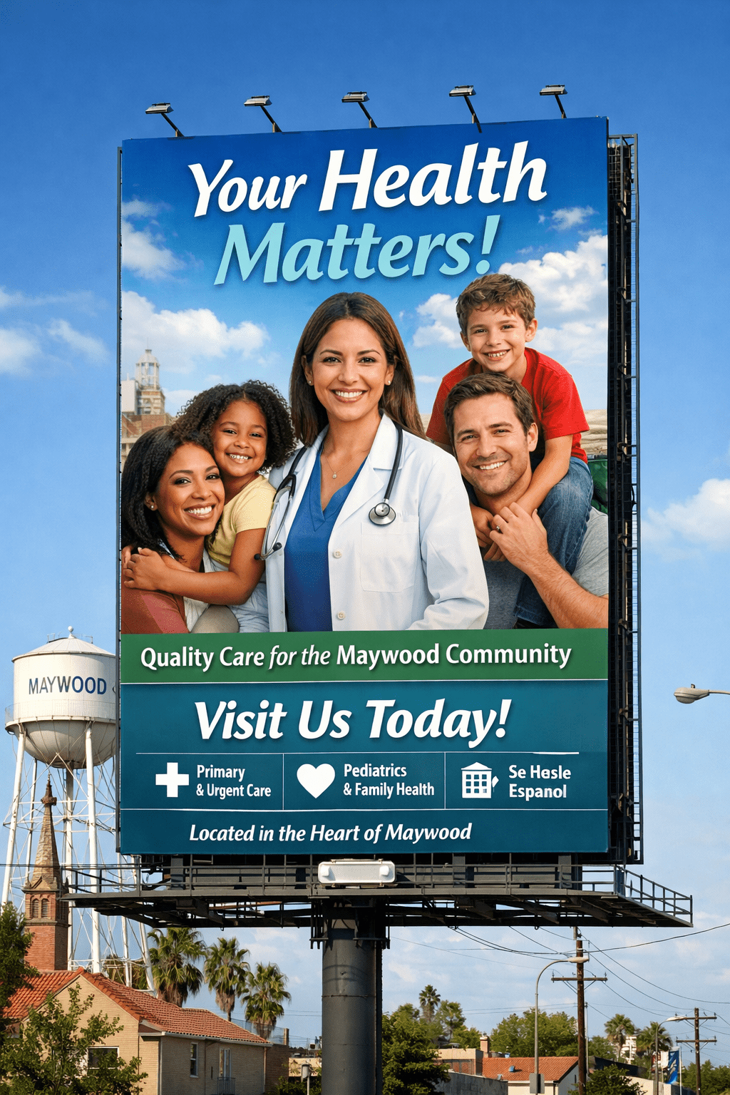 Compared to larger, more competitive markets, billboards in Maywood provide always-on visibility with strong recall—without recurring digital click costs.